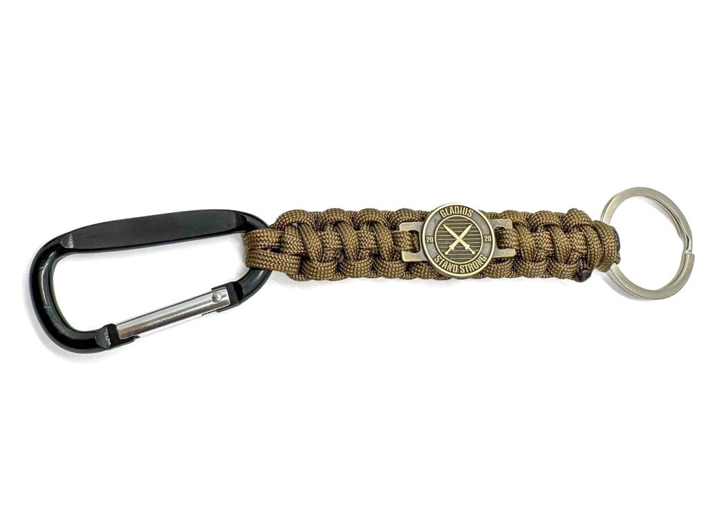 Stylový paracord přívěsek s karabinou a originálním emblémem Gladius – Stand Strong. Praktický doplněk, který poslouží v terénu i jako symbol odhodlání.
